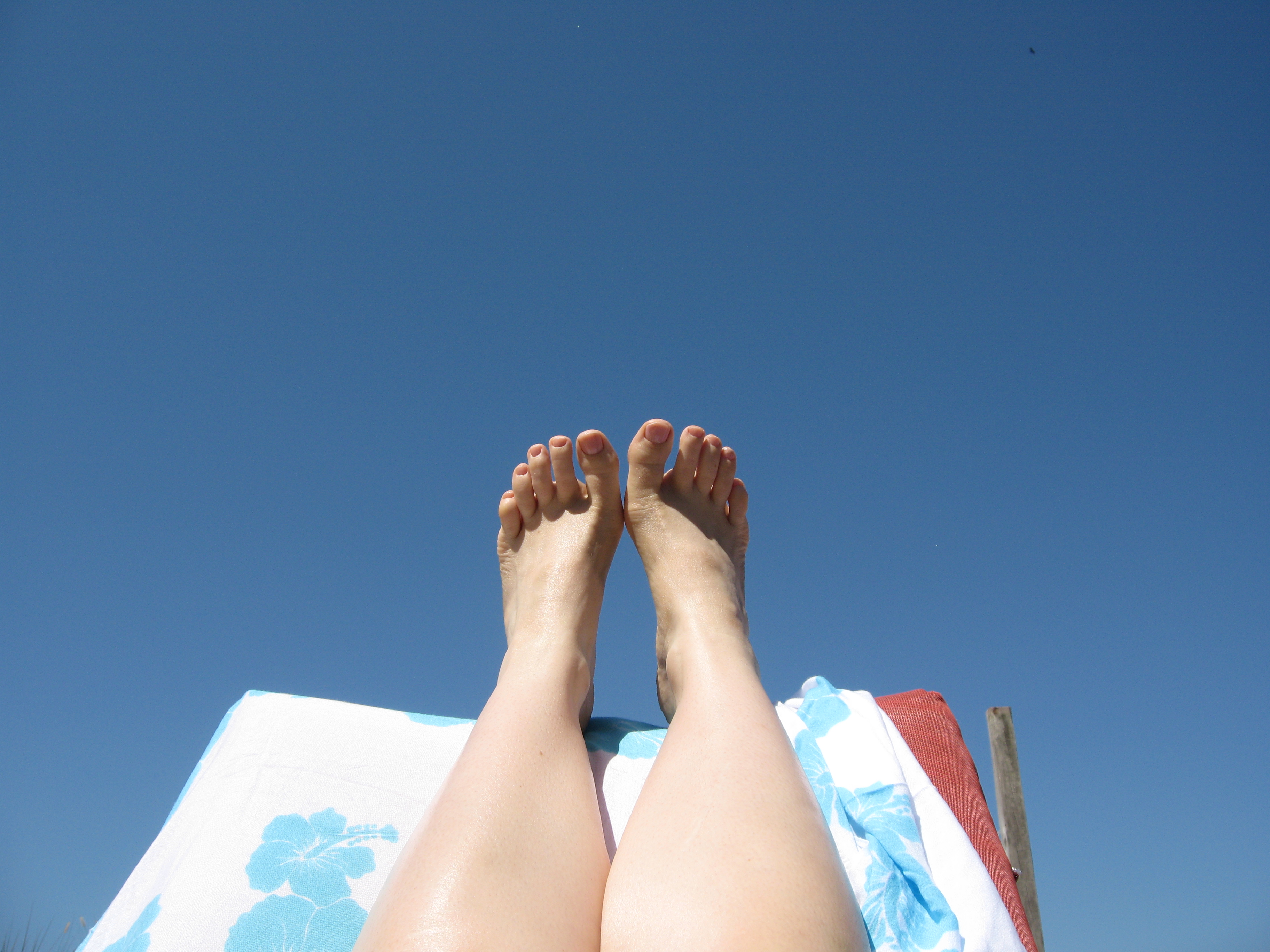 My legs, hoisted high at the pool during a mid-afternoon sun session, in a vain attempt to make them feel rested for that evening's run. All it got me was weird looks from Mr. HB ...
