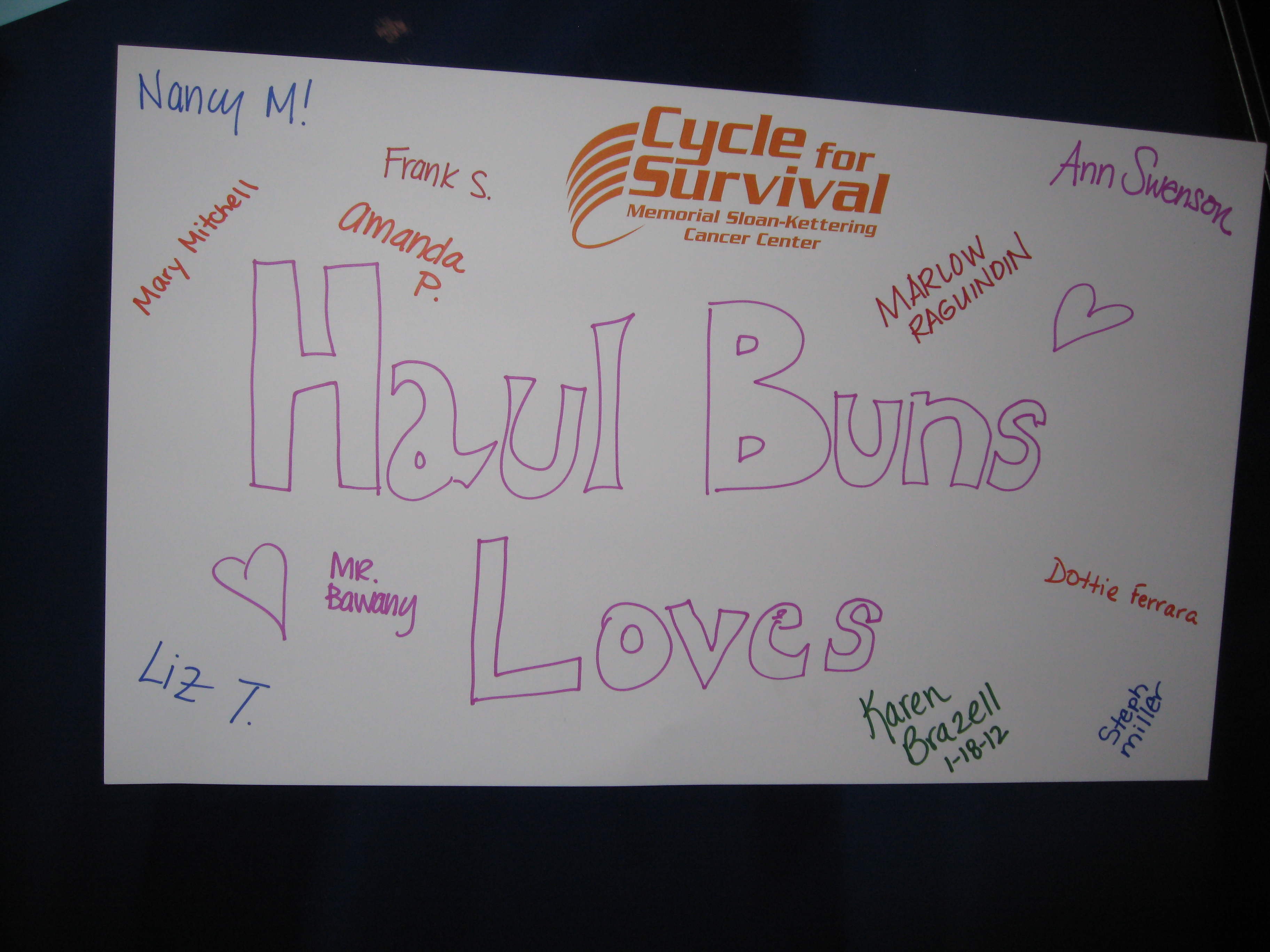 We sported team tee shirts and created a poster for people we love who’ve fought cancer.