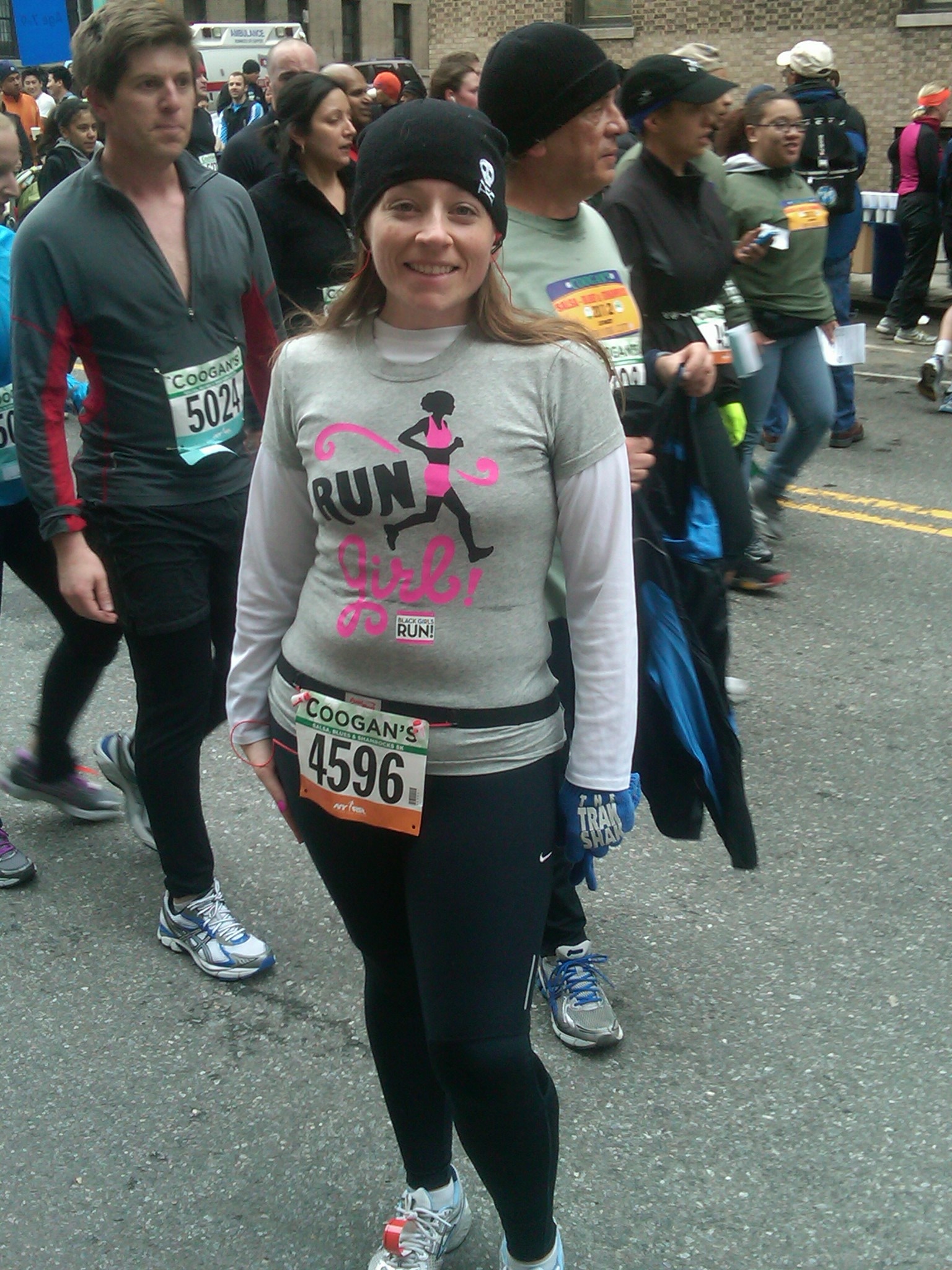 Because of the holidays, travel, and some Achilles’ woes, I didn’t race much at the end of last year/beginning of this year. But this past Sunday, at New York Road Runners‘ Coogan’s Salsa, Blues, and Shamrocks 5K, I wore the shirt with pride.