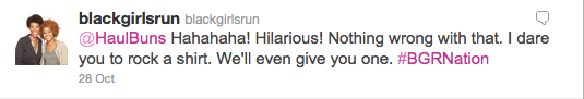 But then, two things happened. In April, BGR! featured a post called “White Girls Run, too,” in which one of the ladies (not sure if it’s Ashley or Toni) talked about how her BGR! shirt got a weird reaction from the white, female desk clerk at her local YMCA. The end of that post read: